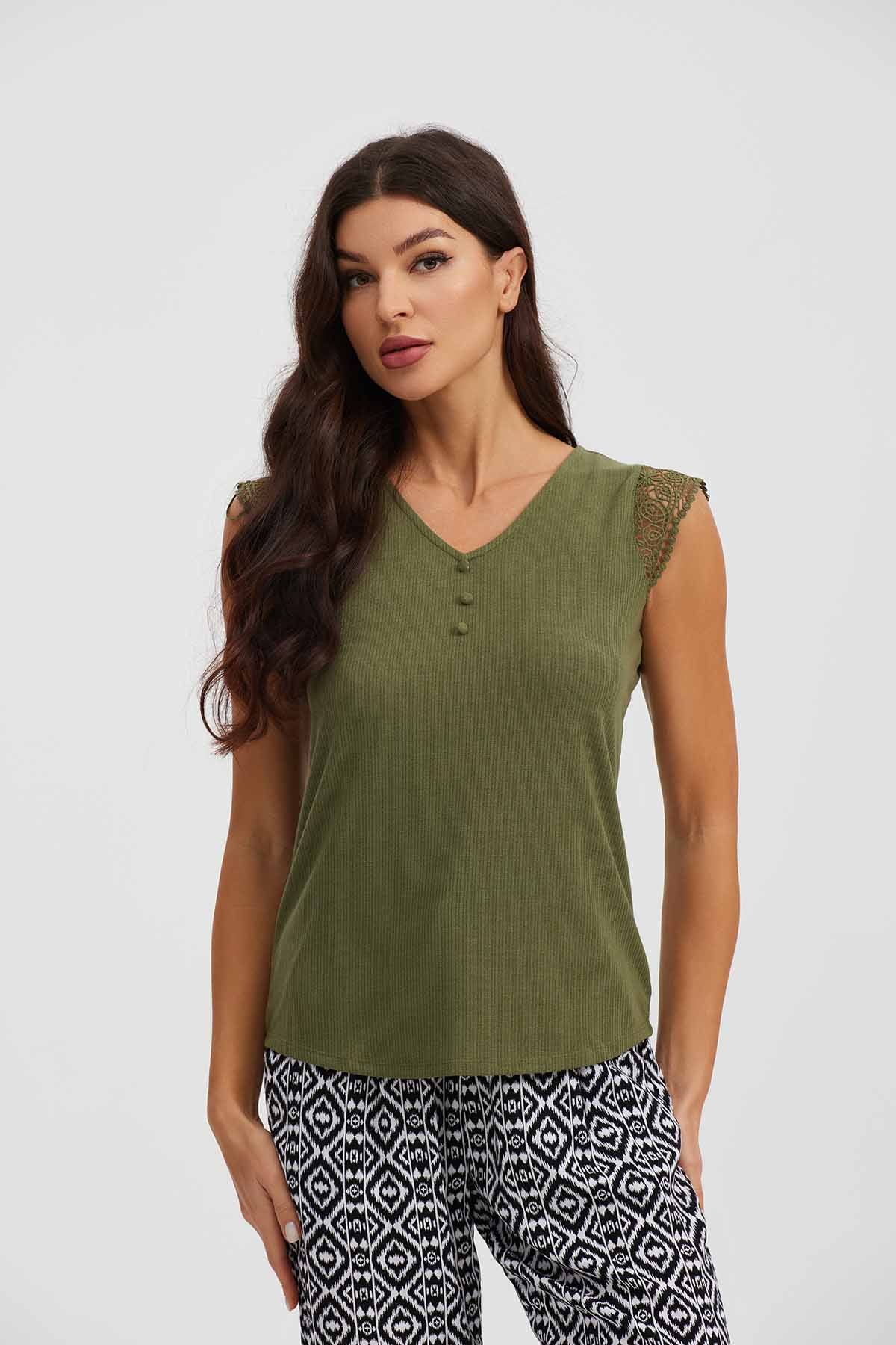 Polera Mujer Macramé Verde Musgo