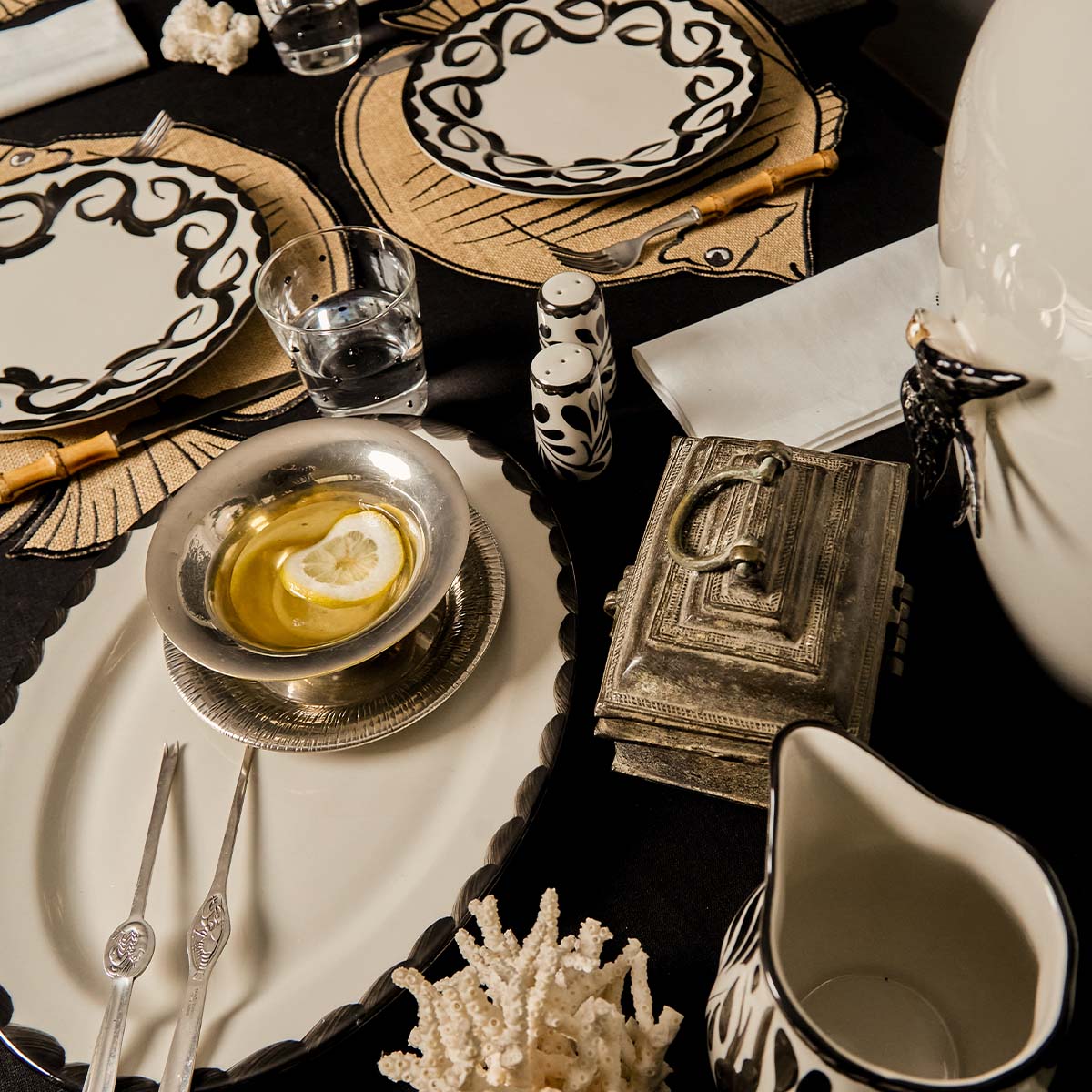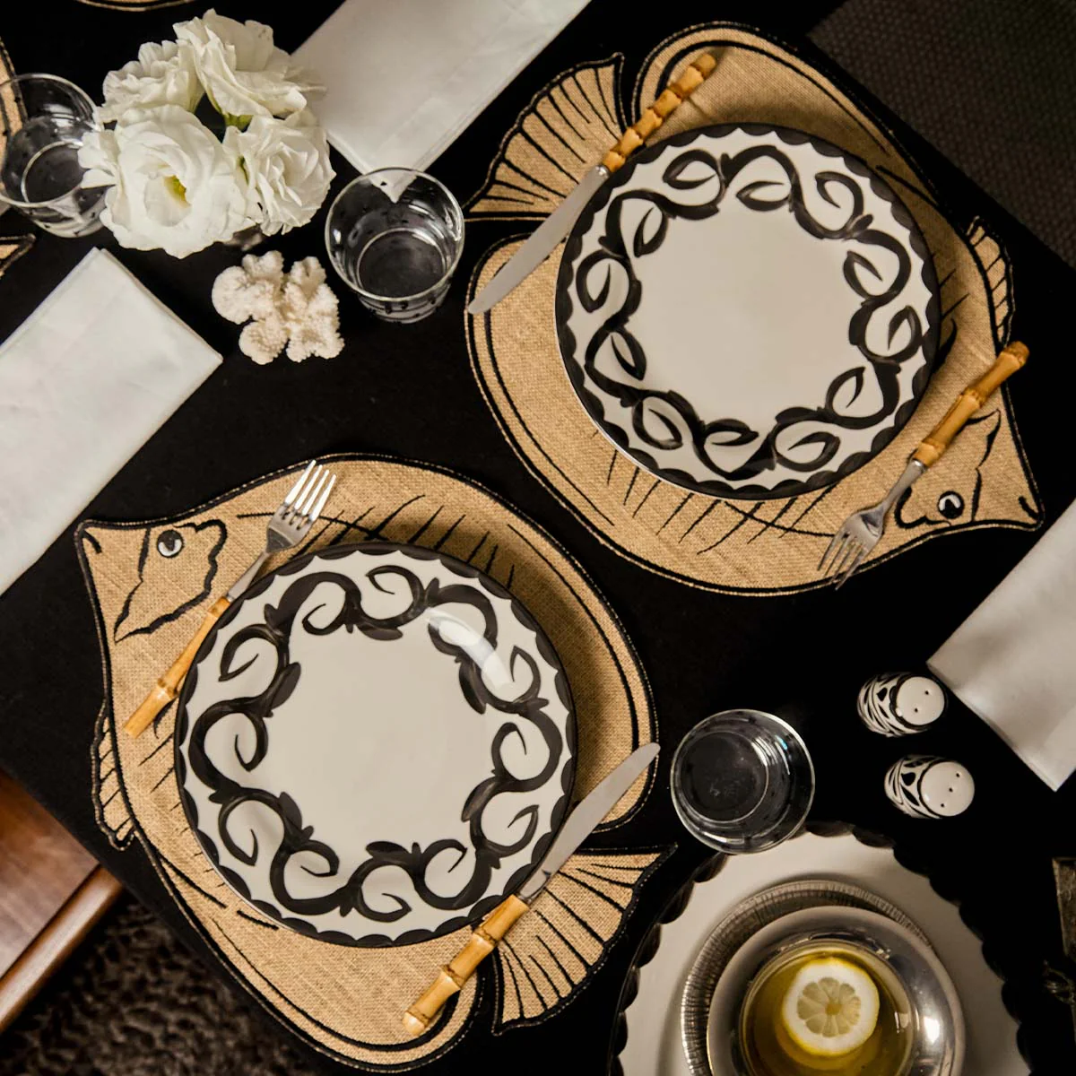 Hermoso conjunto de Salero y pimentero de cerámica con un tradicional diseño mexicano de plumeado por parte de Anfora para Zash.