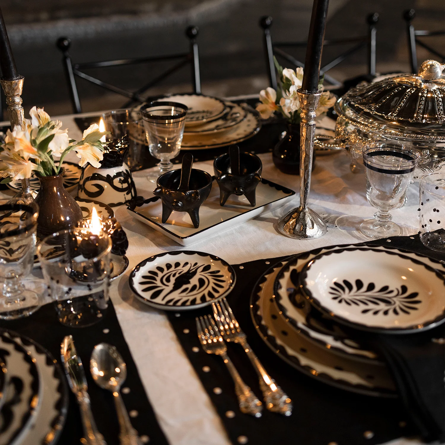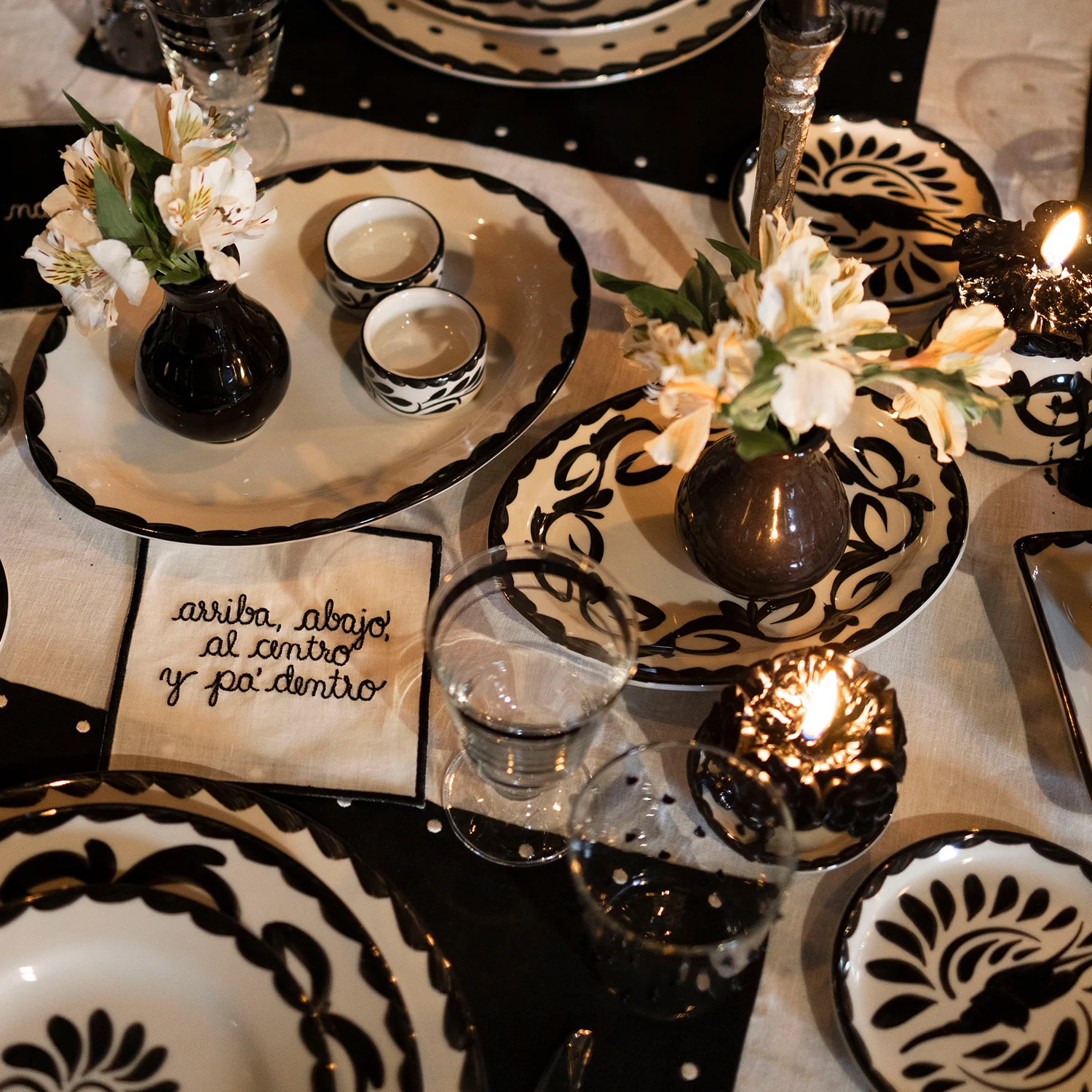 Juego de 3 Salseras Puebla de Anfora en cerámica con su tradicional diseño mexicano de plumeado y puntitos en negro elaborado de forma artesanal con diseño exclusivo para Zash.