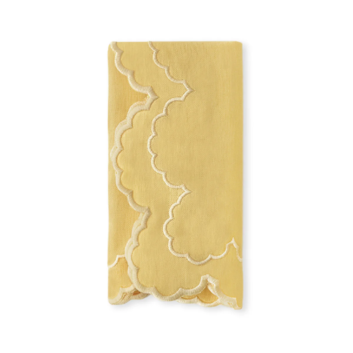 Juego con 4 servilletas Majo de loneta de algodón prelavada en color amarillo con orillas en scallop. Una servilleta alegre, hermosa y perfecta para Primavera.