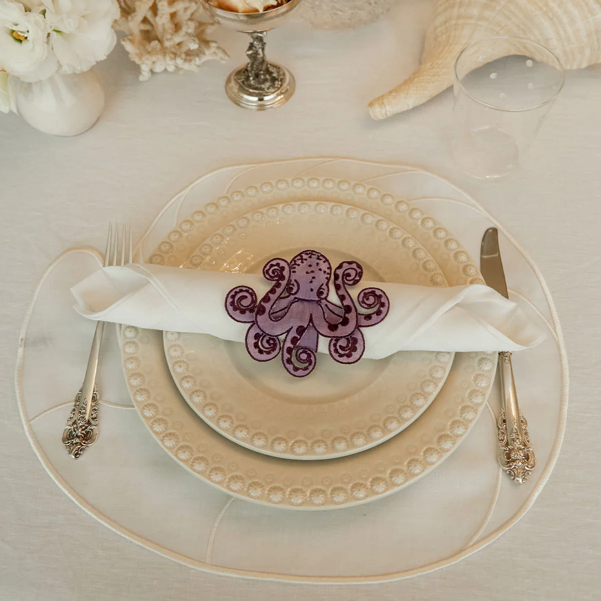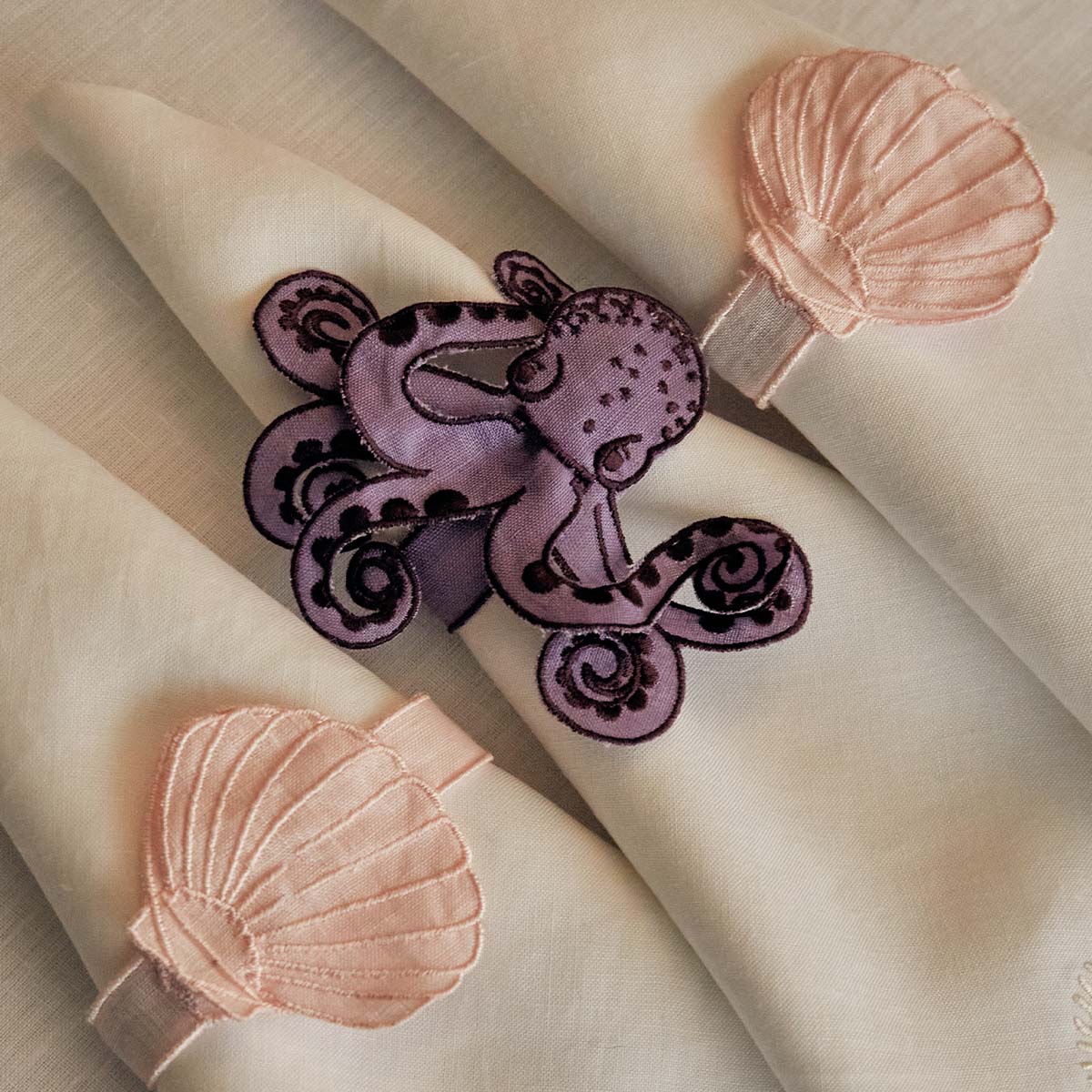 Un coqueto, original y divertido servilletero de pulpo bordado y recortado a mano para llevar el mar y el verano a tus mesas. El regalo perfecto.