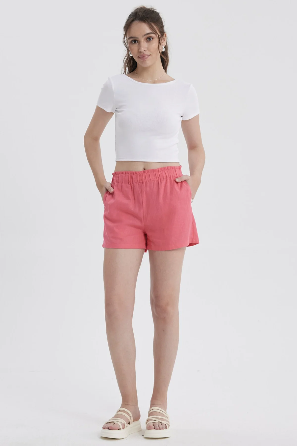 Short Mujer Lino Pretina Rosado