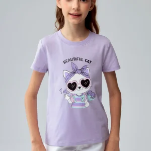 Polera Niña Básica Estampada Lila