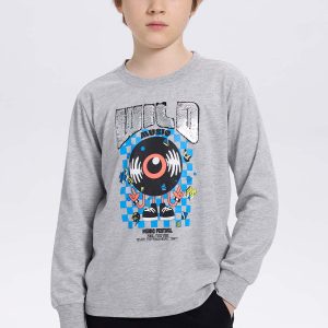 Polera Niño Print Lentejuelas Gris