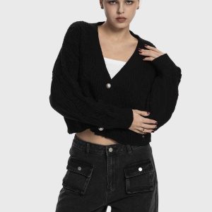 Sweater Mujer Cuello V Abierto Negro
