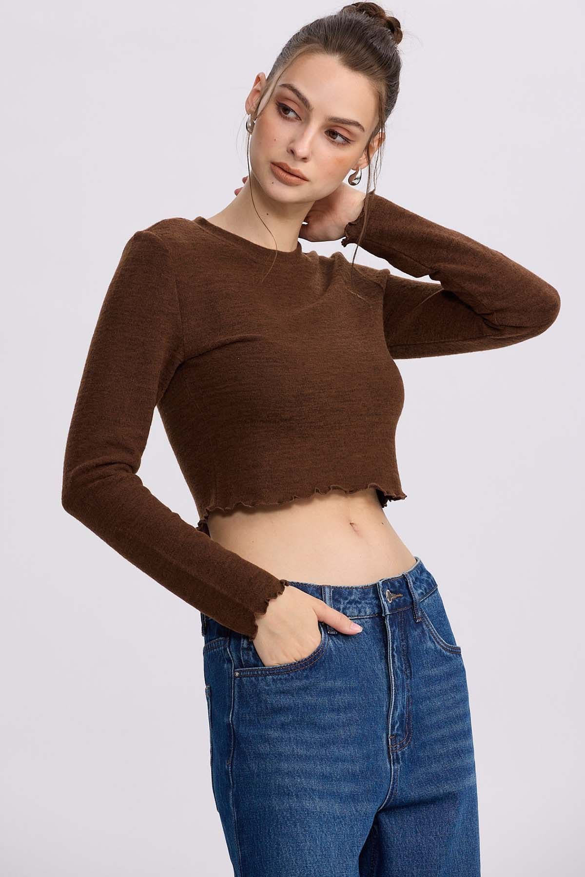 Sweater Mujer Cropped Café