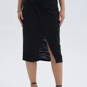 Falda Mujer Midi Cruzada Aplicación Argolla Negro