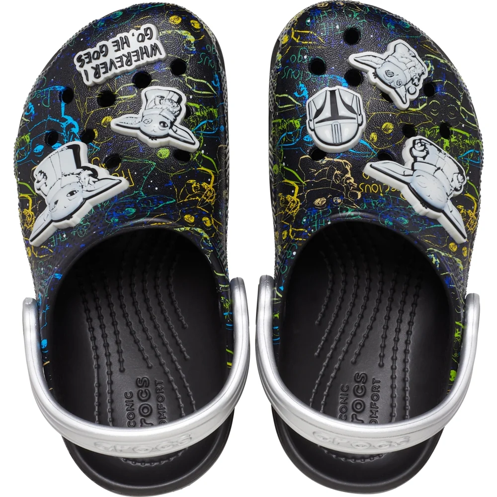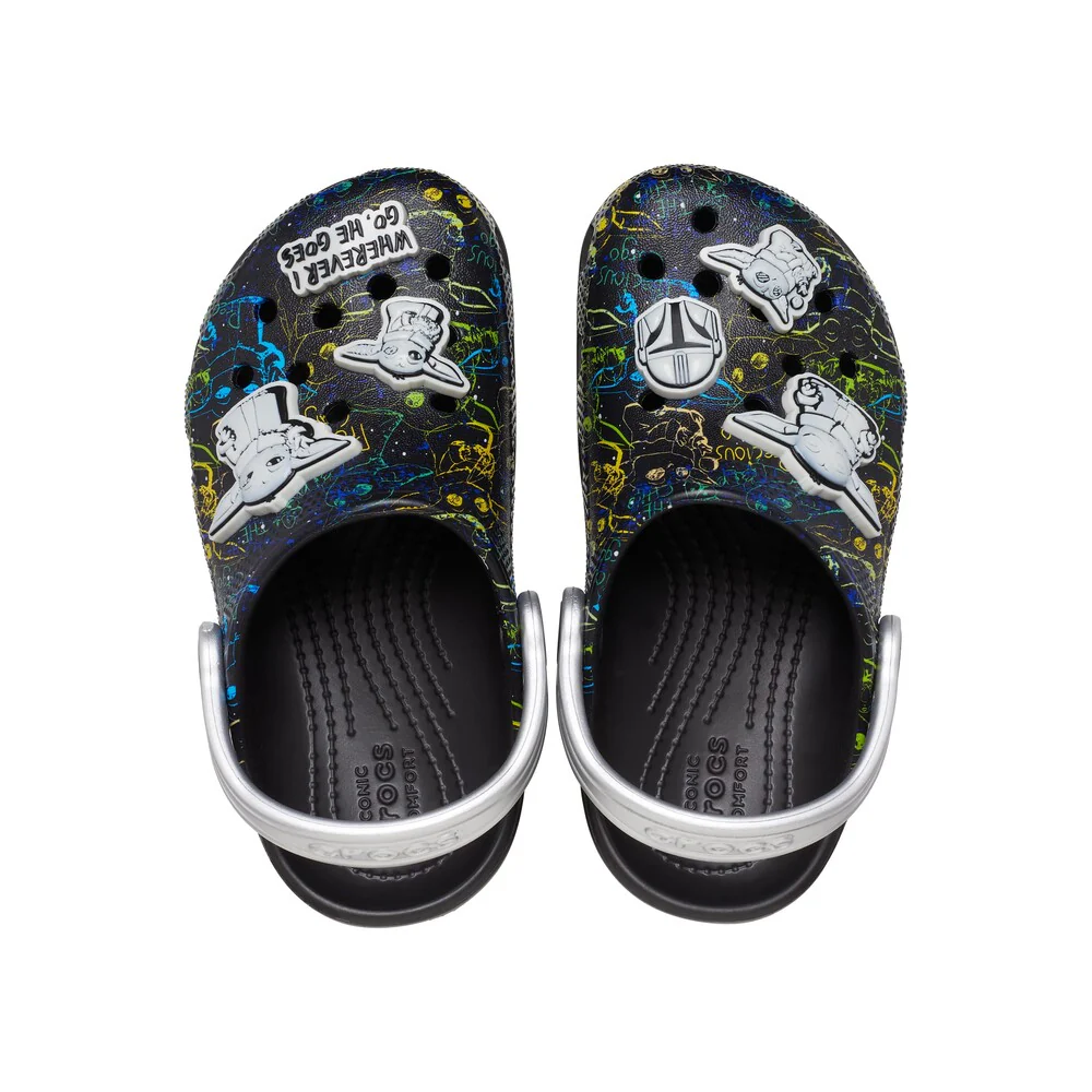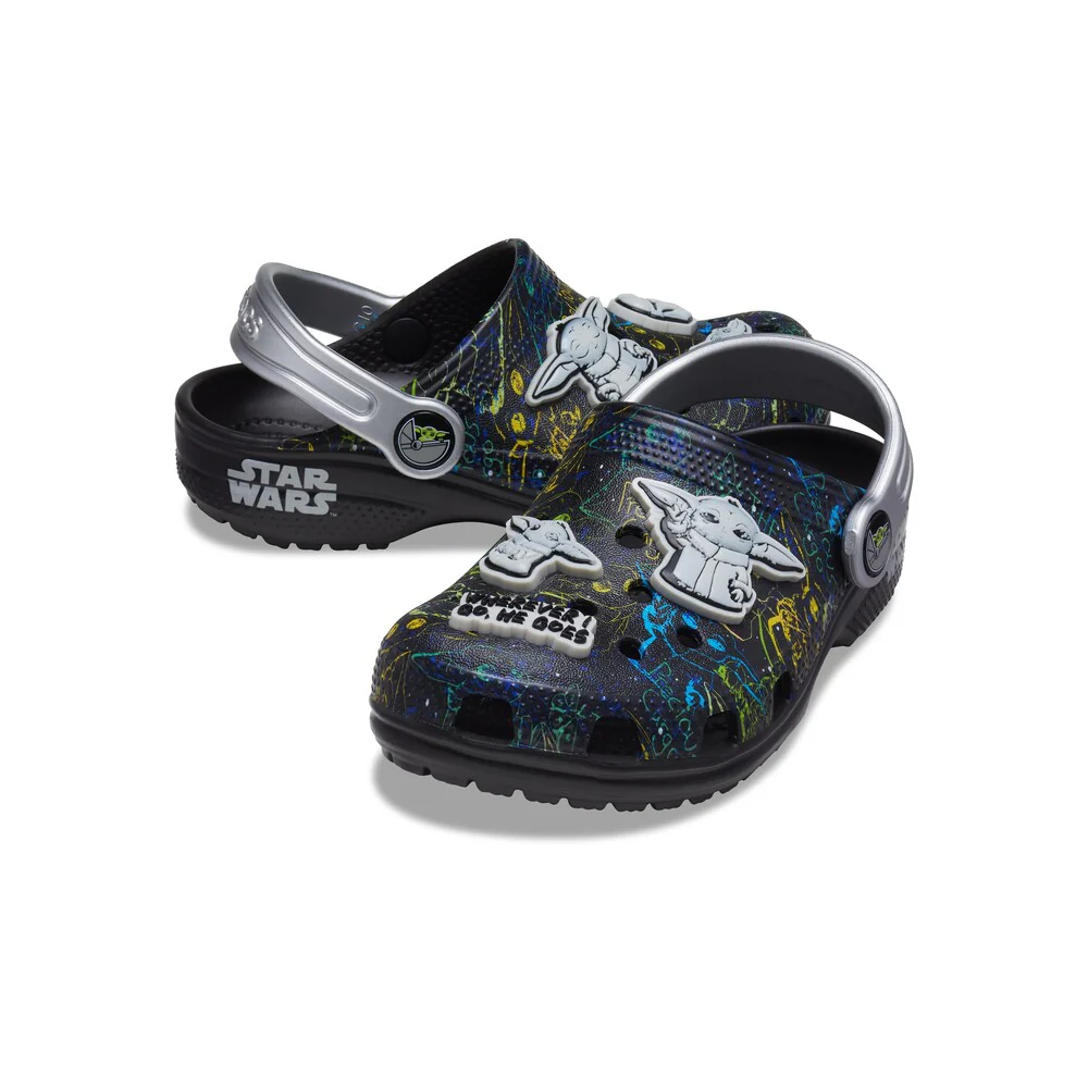 Classic grogu clog modelo: 207893 ¡fácil de poner, fácil de quitar! al igual que el zueco clásico para adultos, la versión para niños ofrece una comodidad y un soporte increÃbles, gracias al material crosliteâ„¢ liviano y duradero y al diseño moldeado. esta versión presenta gráficos de star wars estilo graffiti y adornos fijos con «the child». asà se debe hacer.