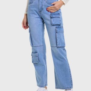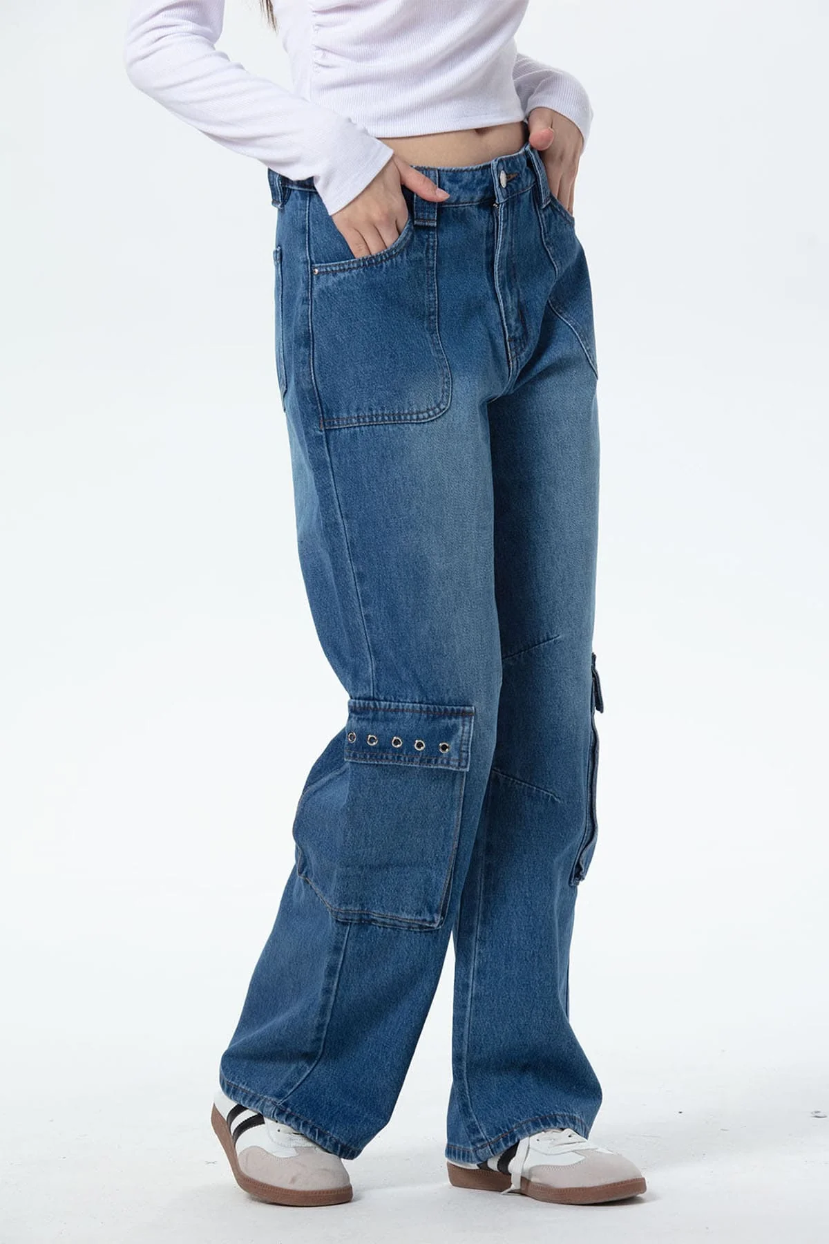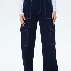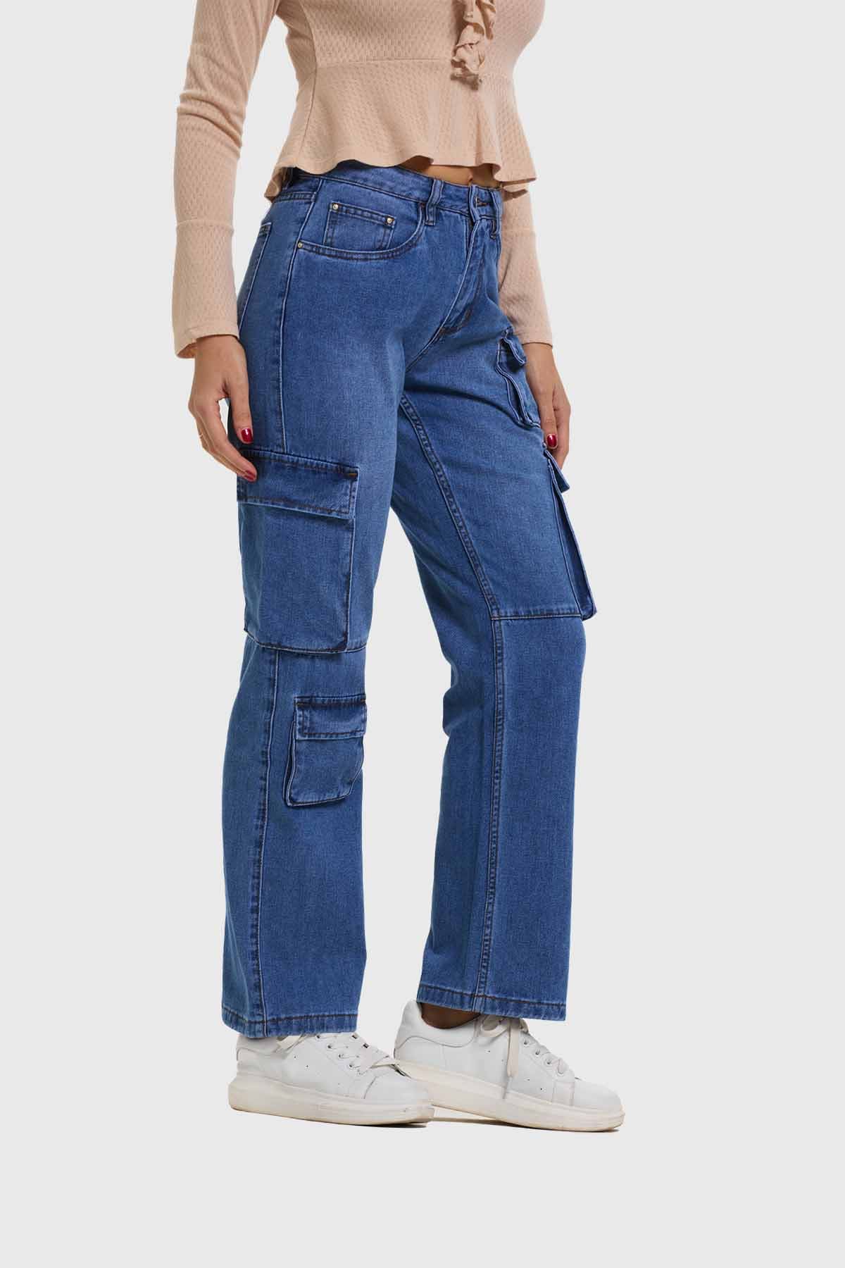 Jeans Mujer Cargo Calce Recto Azul Oscuro