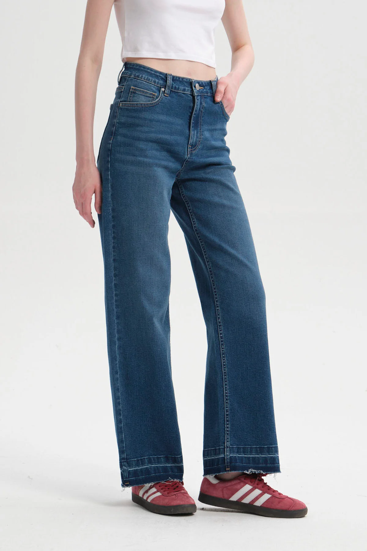 Jeans Mujer Calce Recto Deshilachado Azul Claro
