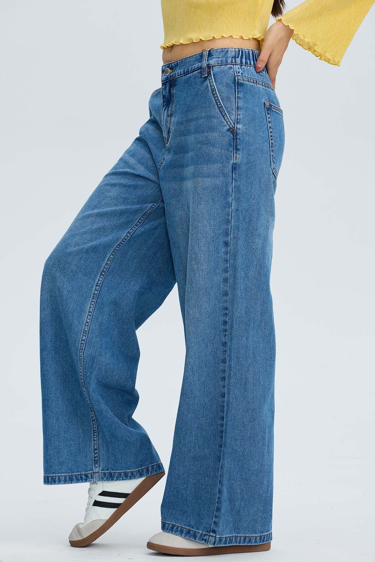 Jeans Mujer Calce Recto Cargo Amarra Azul Claro